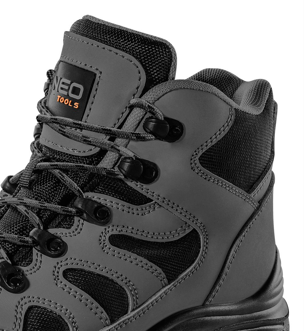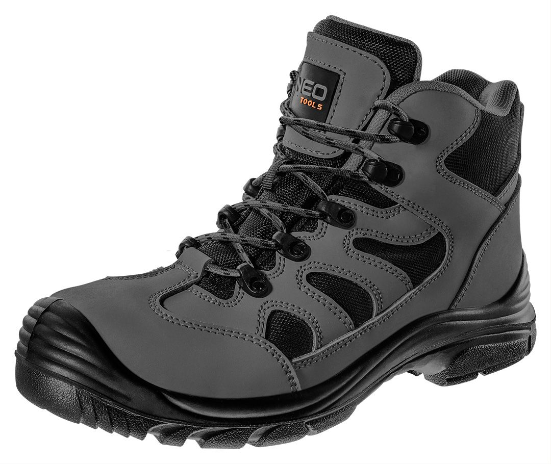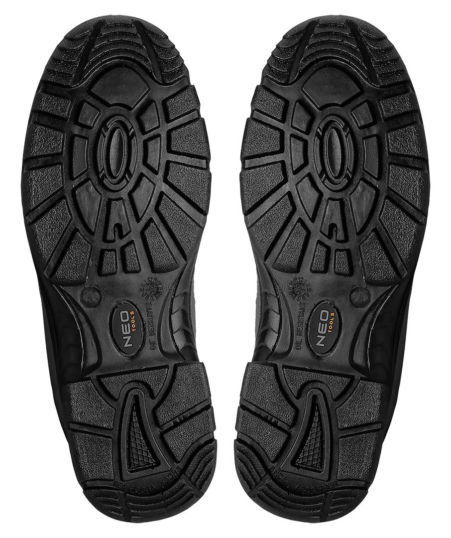 Încălțămintea NEO TOOLS este, de asemenea, rezistentă la uleiuri, benzină și alte solvenți organici, fiind ideală pentru utilizare în medii variate. În plus, dispune de proprietăți antistatice și absoarbe energia în zona călcâiului.