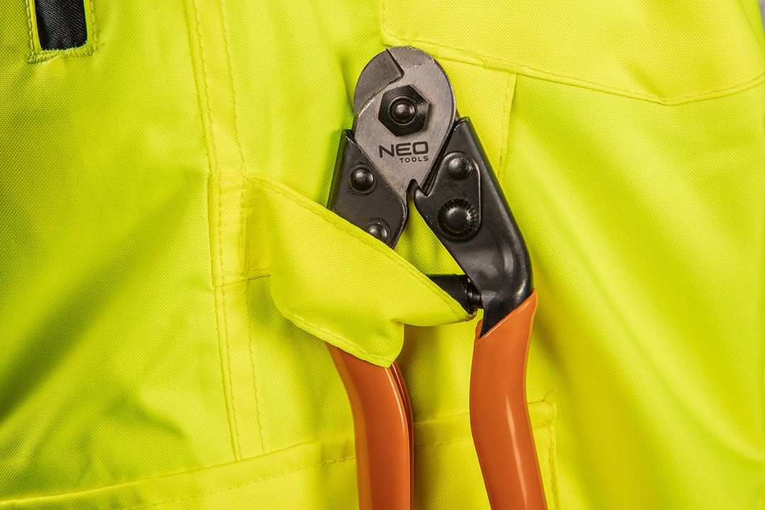 Pantalonii de lucru cu izolaţie termică Neo. Pantalonii cu vizibilitate ridicată, realizaţi din material de înalta calitate, durabil Oxford 300D. Vizibilitate ridicată este o soluţie practică care îmbunătăţeşte siguranţă utilizatorului prin semnalizarea prezenţei sale în toate condiţiile de lumina şi în lumina autovehiculelor. Fabricaţi din material fluorescent rezistent la apă şi prevăzuţi cu elemente reflectorizante care asigura vizibilitate de clasa 1 în conformitate cu cerinţele PN-EN ISO 20471: 2013. Căptuşeală de poliester uşor va oferi confort în condiţii de vremea rece. Cusăturile lipite şi materialul rezistent la apă 1000 mm va permit de asemenea să lucraţi în timpul ploii. Elastic în talie asigura o potrivire mai uşoară pentru dimensiunile D-voastră. Buzunarele robuste şi suport de prindere la îndemână vor rezistă încărcăturii grele şi vor stoca toate uneltele necesare. Garanţia calităţii este garantată un certificat european şi o performanţă conform EN ISO 13688: 2013.