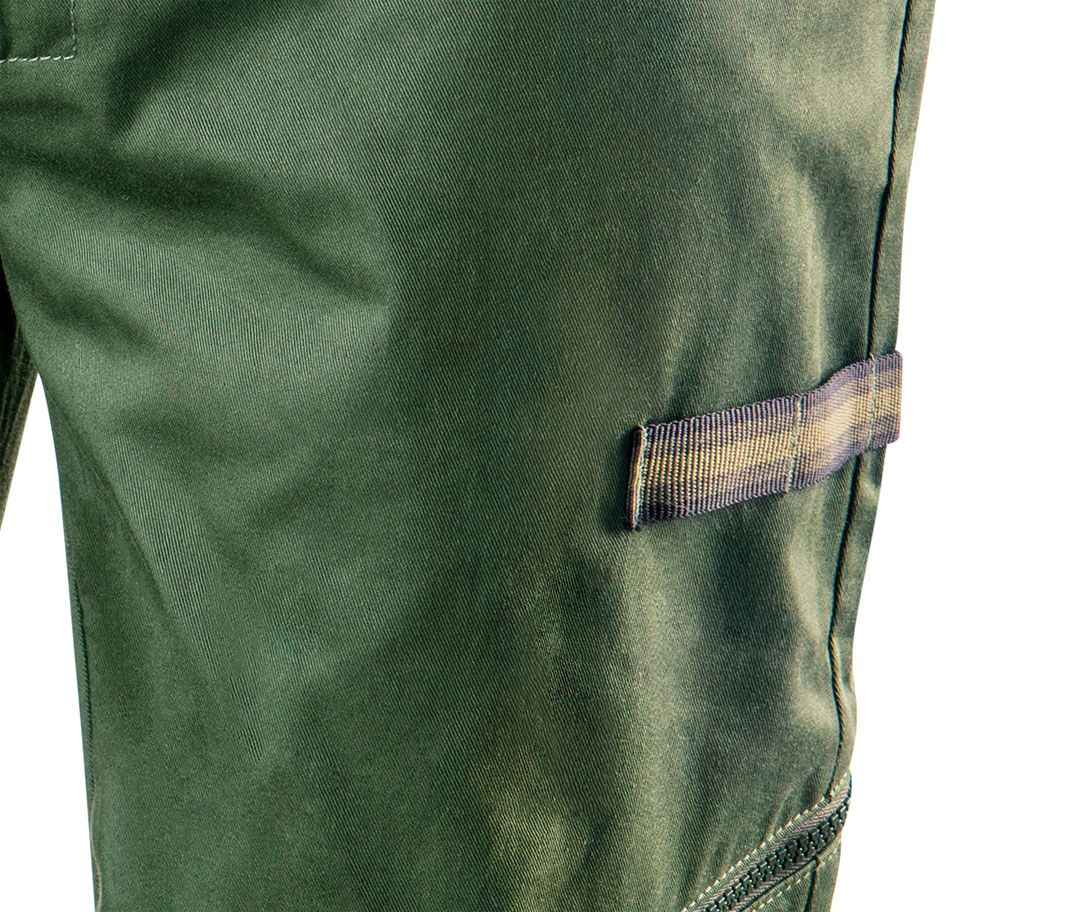 Acestea sunt echipat cu un buzunar pentru o insignă de identificare și un buzunar pentru Acestea sunt echipate cu un buzunar de identificare și o etichetă de identificare care permite personalizarea la locul de muncă. Pantalonii au genunchii întăriți cu o curea suplimentară din material textil și genunchii sunt întăriți cu o fâșie suplimentară de țesătură, iar cusăturile sunt cusute de trei ori pentru a consolida construcția hainei.