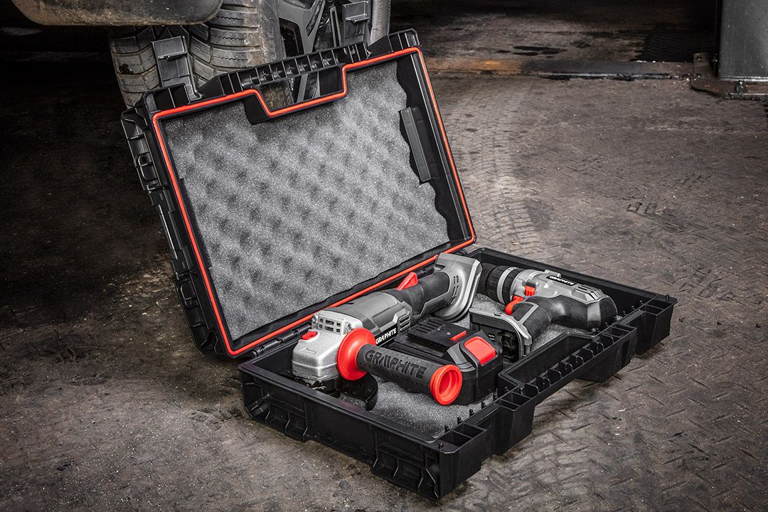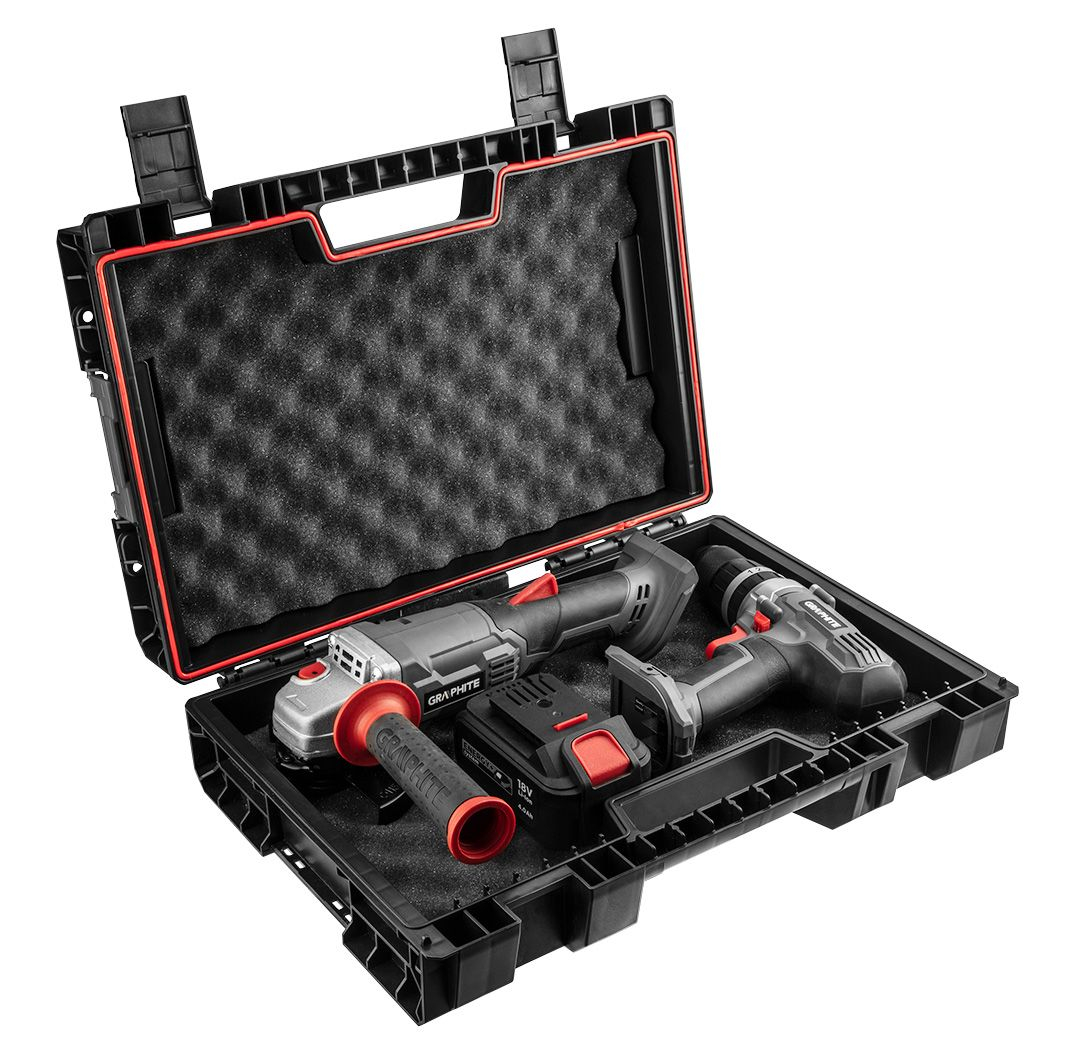 Cu o capacitate de 11 litri, cutia pentru scule electrice GRAPHITE (ref. 58GE102) păstrează uneltele în siguranță și ajută la păstrarea ordinii. Produsul este rezistent la apă și praf, datorită unei garnituri de etanșare în capac. Designul întărit al corpului face cutia rezistentă la deteriorări mecanice. Interiorul cutiei este căptușit cu spumă protectoare moale.