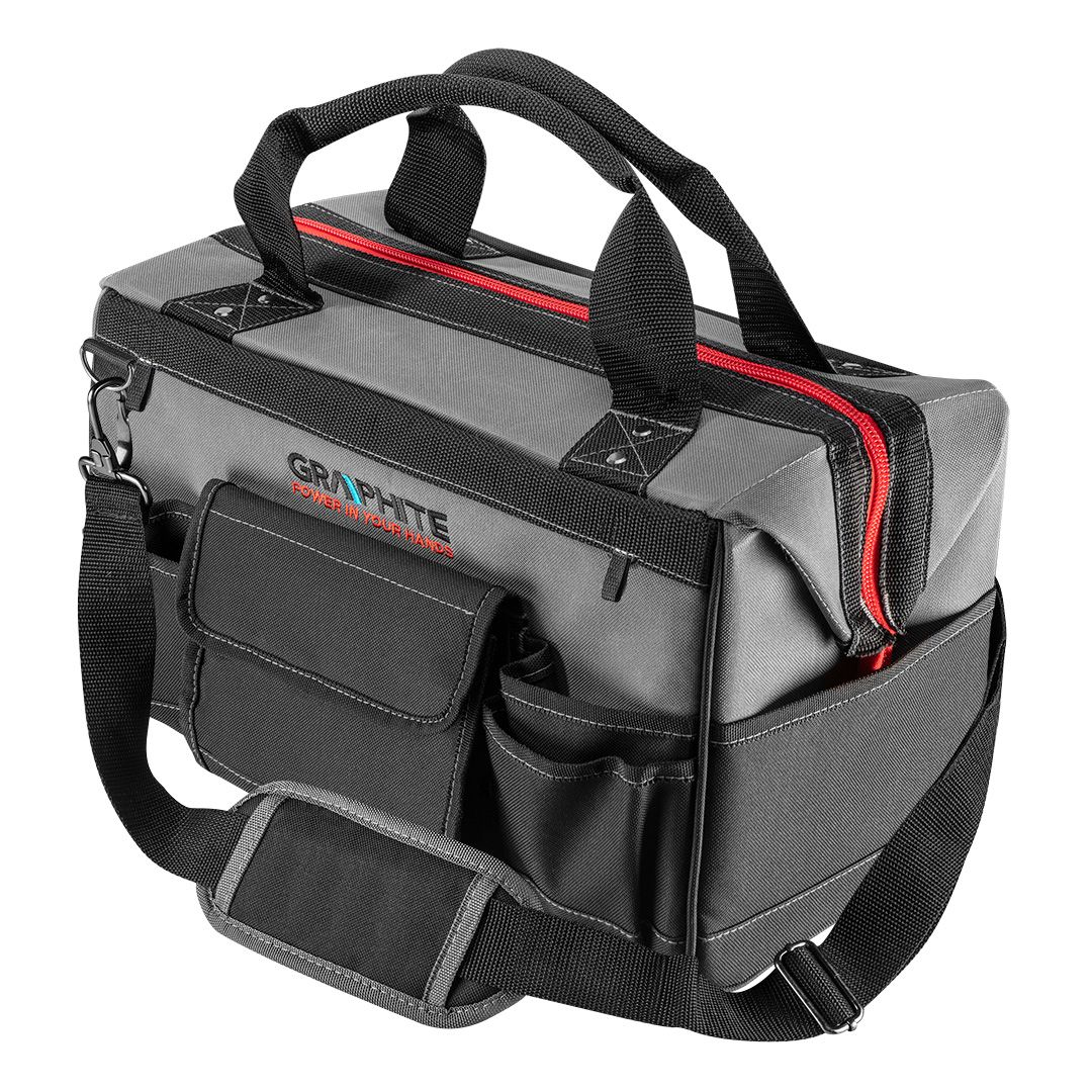 Rezistent la apă geantă medie pentru scule electrice cu o capacitate de 18,5L, realizată din Poliester rezistent la uzură. Geanta căptușită este echipată cu 8 buzunare interne, 2 cârlige interne pentru unelte Geanta căptușită are 8 buzunare interne, 2 suporturi interne pentru unelte și 7 buzunare externe pentru Geanta căptușită are 8 buzunare interne, 2 suporturi interne pentru unelte și 7 buzunare externe pentru a vă organiza uneltele și a le transporta în siguranță. Geanta este, de asemenea, echipată cu mânere cu curea și curea reglabilă pentru transport confortabil. mâner de transport.