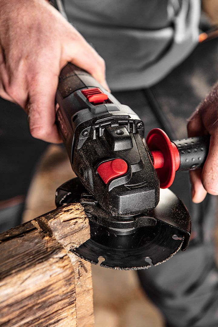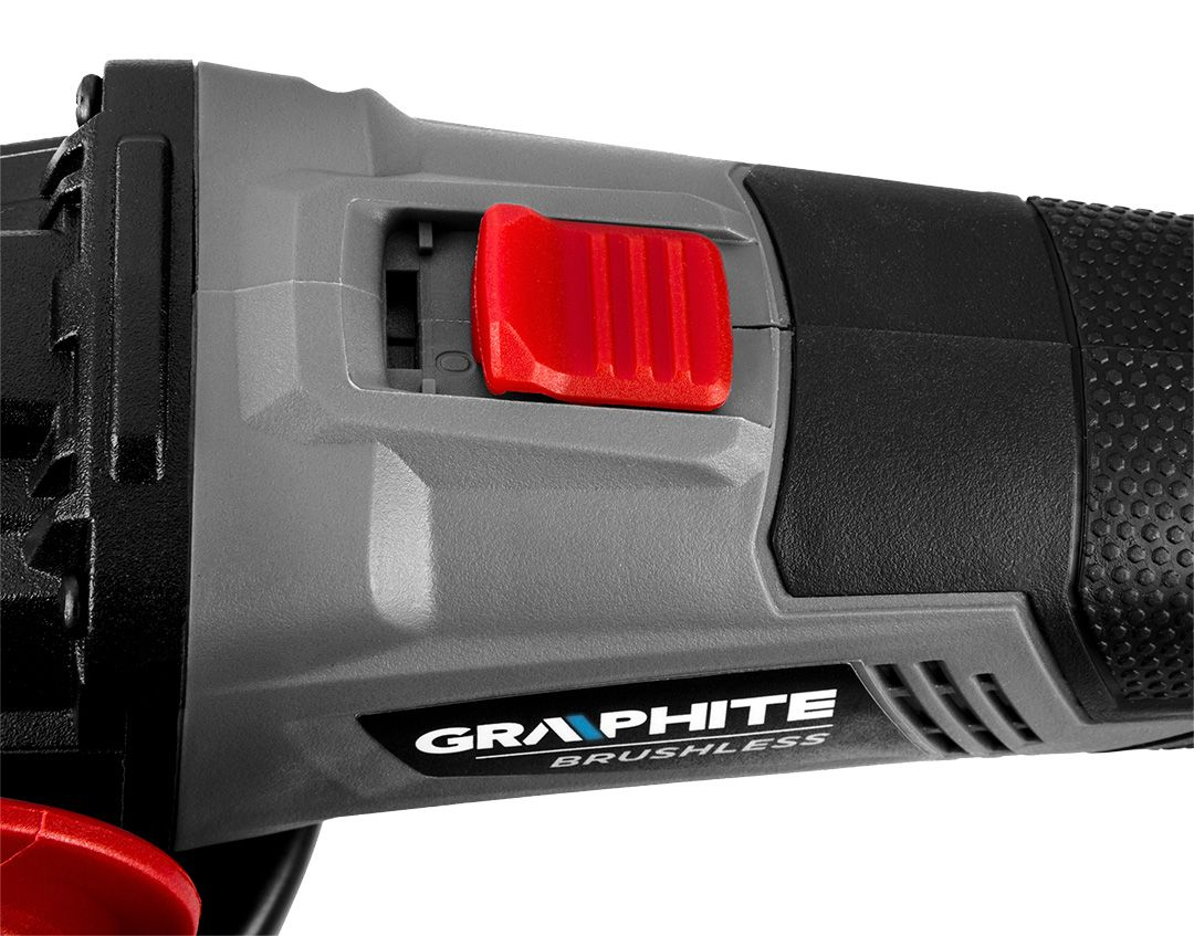 Polizor unghiular GRAPHITE, care funcționează cu baterii 18V Li-Ion GRAPHITE Energy+. Proiectat pentru a fi utilizat cu lame cu diametrul de 125 mm, are o viteză de 10.000 rpm. Polizorul este echipat cu un buton de pornire/oprire cu două componente și un buton de blocare a axului pentru a proteja utilizatorul de activarea accidentală a blocării în timpul lucrului. Polizorul este proiectat ergonomic, cu un material antiderapant pe partea îngustă a mânerului, ceea ce îl face confortabil de utilizat. Datorită carcasei cu angrenaj plat, unealta poate fi utilizată și în locuri greu accesibile.