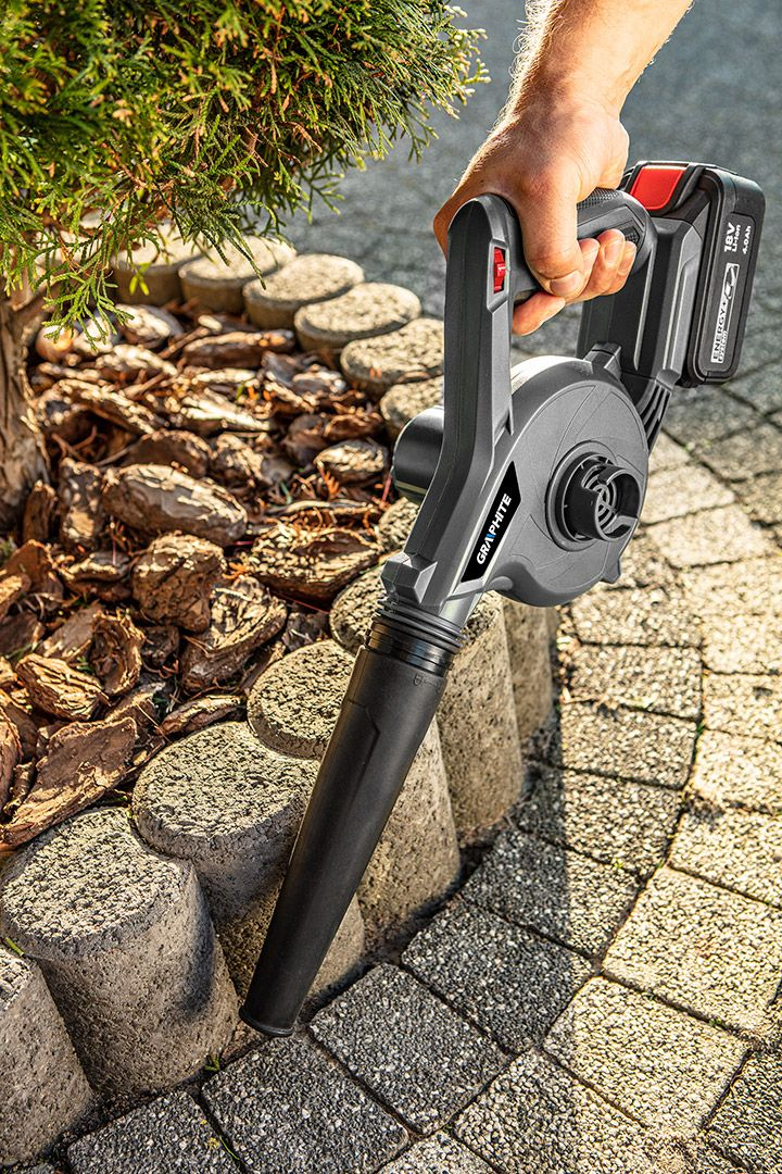 Suflanta mica fara fir Energy+ 18V, Li-Ion, 58G118 GRAPHITE este o unealta 2 in 1 utila pentru casa, gradina si atelier, care functioneaza cu tehnologia sistemului de baterii Energy+ de la GRAPHITE. Are o functie practica de control al vitezei in 3 trepte si o optiune de aspirare. Aparatul atinge o turatie maxima la ralanti de 6000, 12000 sau 18000 RPM. Viteza maxima a aerului este de 240 km/h, iar limita superioara a debitului este de 102m³/h. Bateriile recomandate pentru suflanta sunt cele cu o capacitate de 2 Ah (timp de functionare de 10 minute) si 4 Ah (timp de functionare de 19 minute). Aparatul este oferit intr-un set cu un sac de praf. Usor de instalat, cu un maner cu prindere moale si cu aspecte ecologice, suflanta este un model silentios si fara emisii, care are cu siguranta mai multe de oferit decat suflantele mari pe benzina.