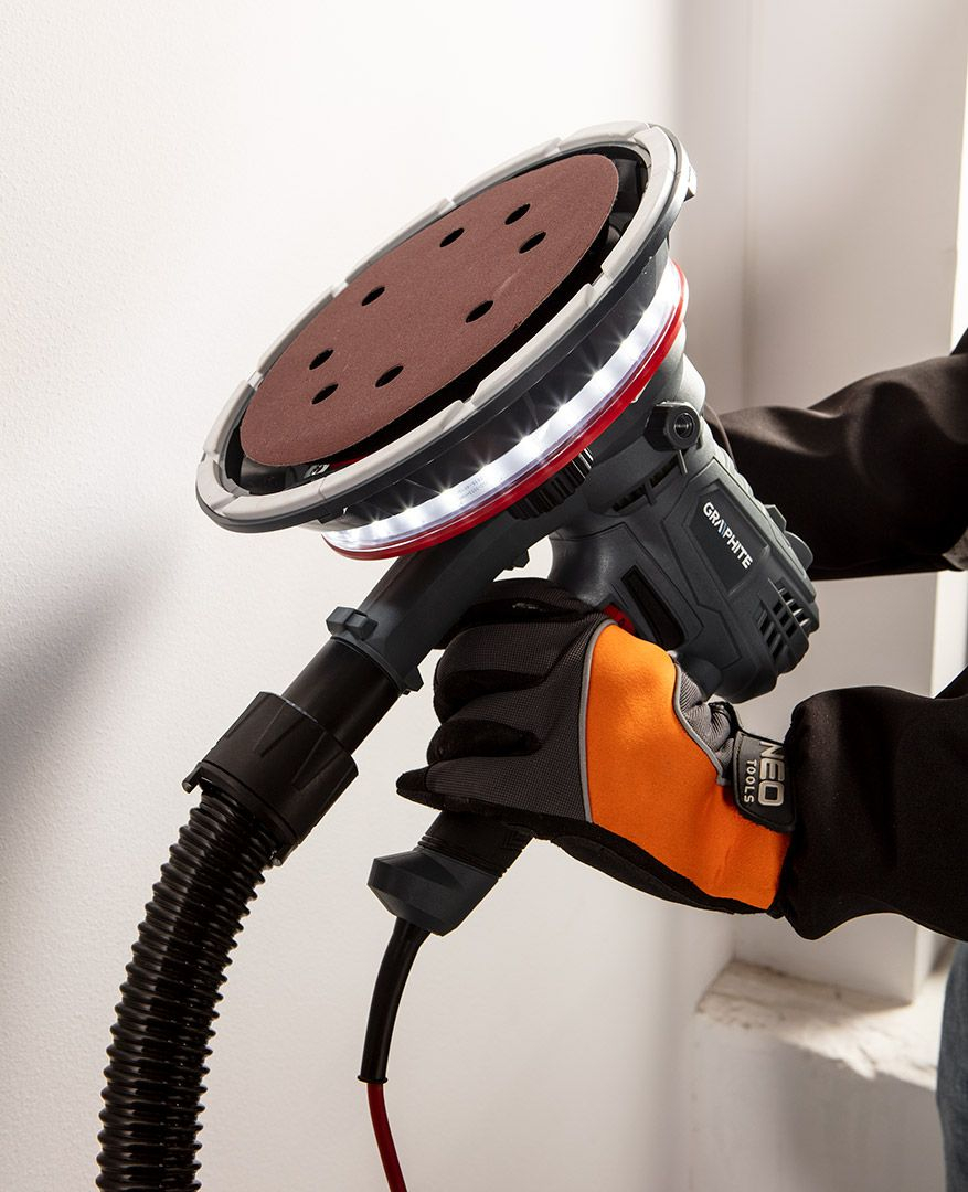 Slefuitorul de gips 900 W, 180 mm, led 59G263 de la GRAPHITE este un slefuitor de 900 W cu iluminare LED pentru lucrul pe suprafete de gips. Are o rotatie a capului reglabila continuu de la 1400 la 2700 rpm. Discul slefuitorului are un diametru de 180 mm. slefuitorul are o actionare directa a discului de slefuit, ocolind arborele. Cablul lung de 5 metri si furtunul de aspirare flexibil ii permit sa functioneze pe o raza mai mare de actiune. La randul sau, sistemul de colectare a prafului asigura conectarea unui aspirator pentru a pastra ordinea. Schimbarea hartiei abrazive folosite este usoara datorita sistemului de fixare cu carlig si bucla. slefuitorul este livrat cu hartie de slefuit (diferite granulatii), furtun de aspiratie, sac de praf si geanta de transport. Conformitatea cu standardele europene este asigurata de certificarea CE.
